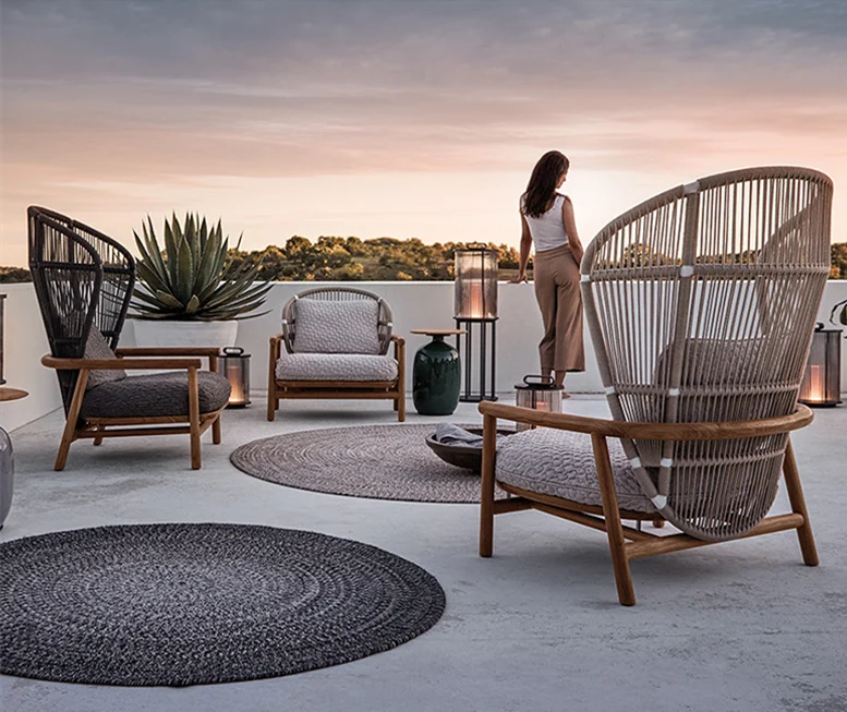 As an outdoor furniture manufacturer, In order to meet the needs of some customers who pursue high-end fashion, economical quality improvement, etc., we select product materials, teak overall frame, rust-free aluminum frame, fabrics and woven fabrics with the best color fastness, waterproof and quick-drying and other materials are commonly used in our products. At the same time, it has gradually developed from traditional furniture to a development model that mainly manufactures outdoor furniture and supplements traditional furniture.