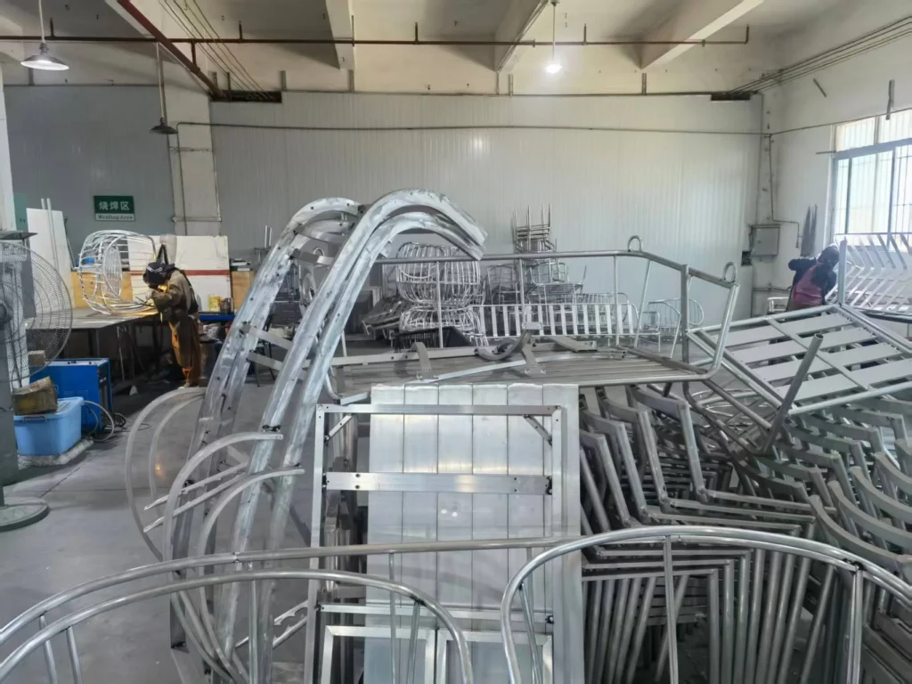Workplace differentiation: Material stacking area, cutting area, polishing and processing area, assembly area, made of non rusting aluminum or teak wood according to different customer needs