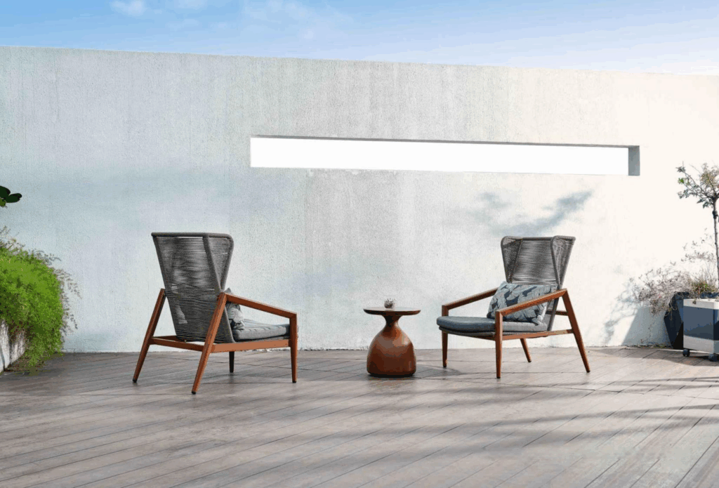 We use only premium, weather-resistant materials including powder-coated aluminum frames, Grade-A teak wood, and UV-resistant PE rattan or outdoor fabrics (like Sunbrella). Every piece undergoes rigorous quality control (QC) to ensure it withstands harsh outdoor environments while maintaining its luxury aesthetic.